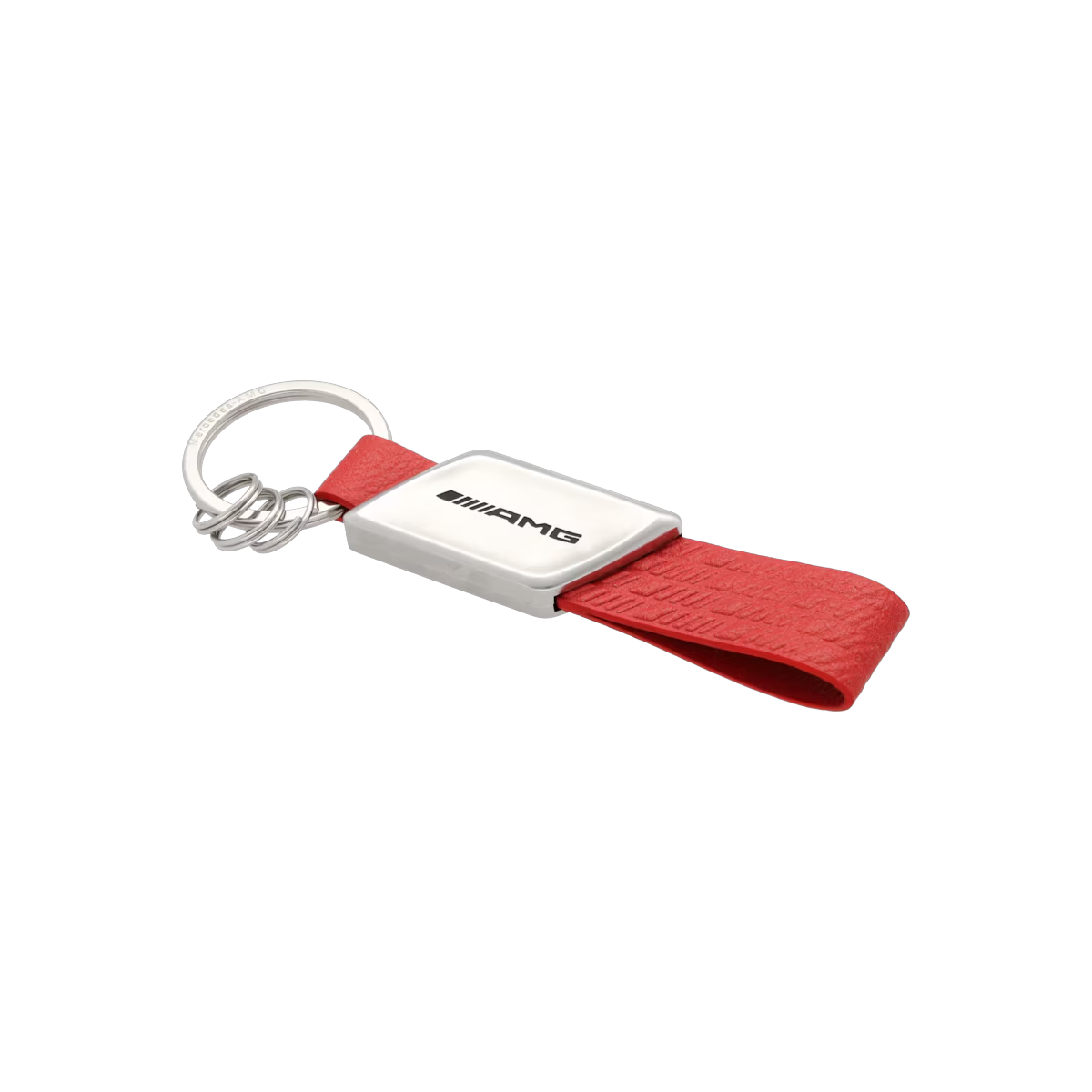 Praktisch und stylisch: Mit dem AMG Schlüsselanhänger sind alle wichtigen Schlüssel stets griffbereit an einem Ort verwahrt. Das rautenförmige Metallteil und die rote Schlaufe aus veganem Apfelleder setzen optische Akzente. Ein großer Flachspaltring bietet Platz für Hauptschlüssel, während drei zusätzliche Minispaltringe ein schnelles Anbringen und Entnehmen einzelner Schlüssel ermöglichen. So behalten Sie stets die Kontrolle über Ihren Schlüsselbund.