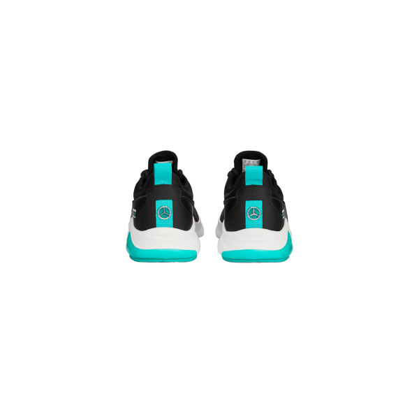 Optische Akzente setzen das PUMA Cat Logo auf der Zunge, der MERCEDES AMG PETRONAS MOTORSPORT Druck sowie die Sternniete an der Ferse. Perfekt für Motorsportfans und alle, die sportliches Design lieben.
